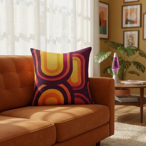 Midcentury Retro 70s Throw Pillow Cover – Vintage Pattern Accent