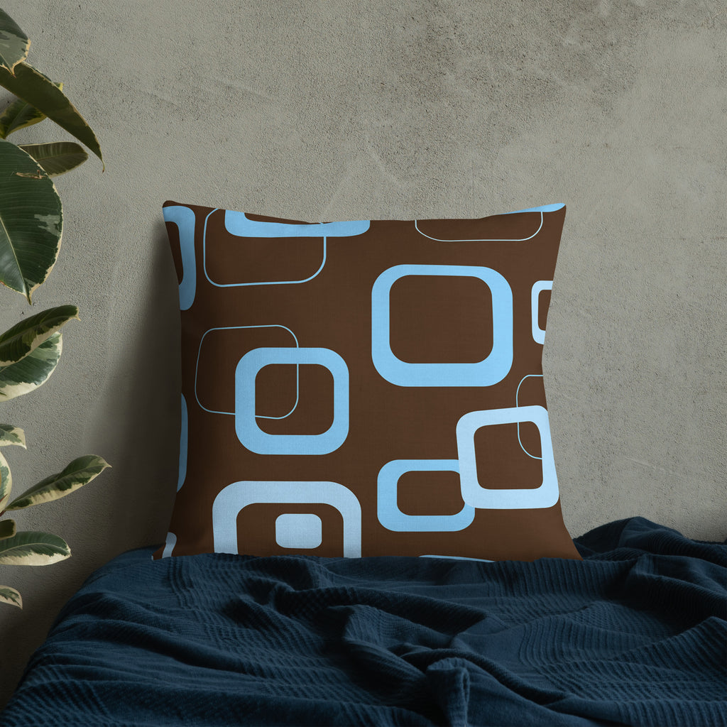 RETRO 60s Midcentury Pillow, Brown Blue Vintage Style Cushion