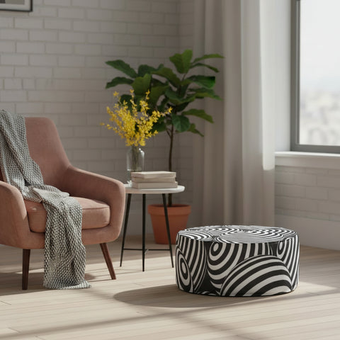 1980s Retro Inflatable Retro Ottoman – Black White Footstool Seat
