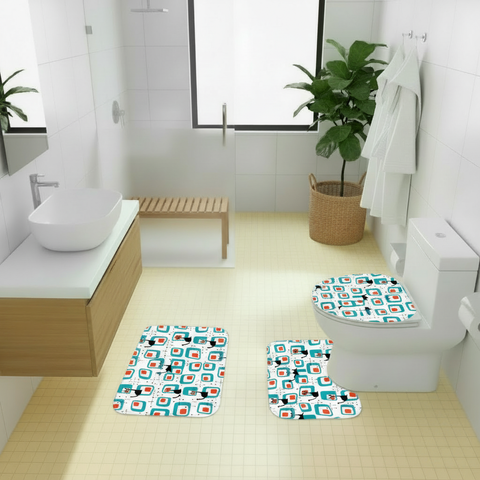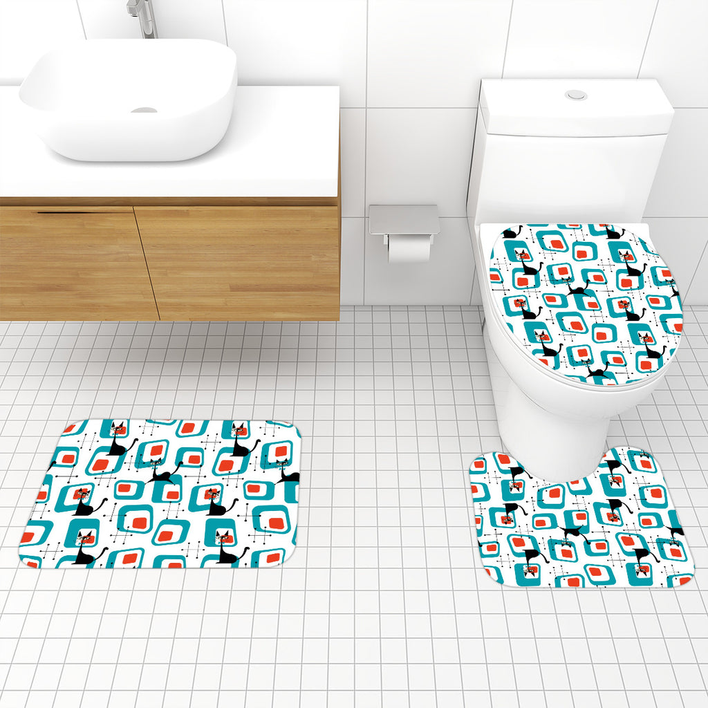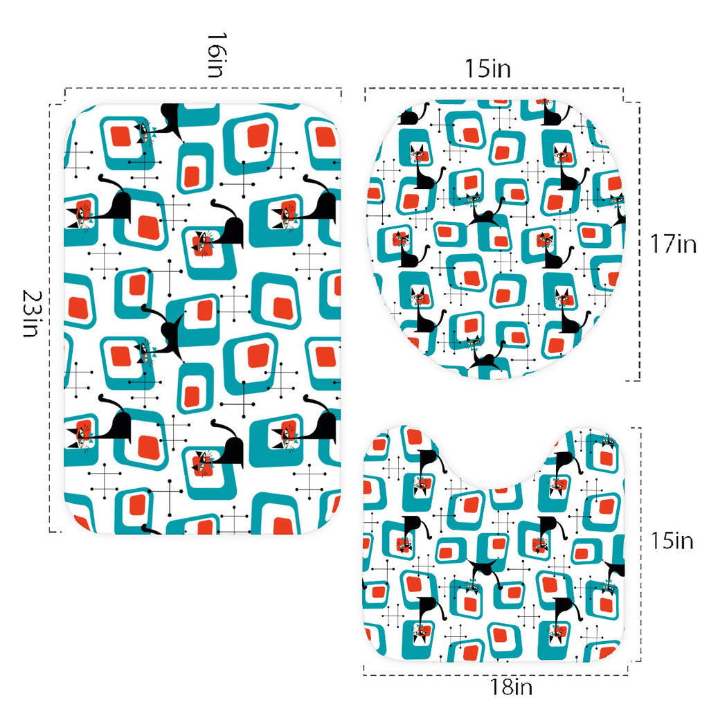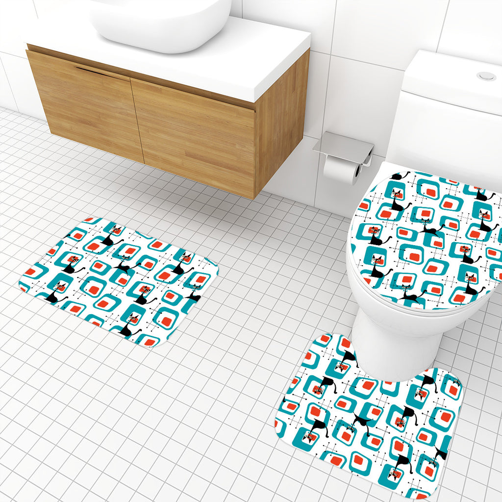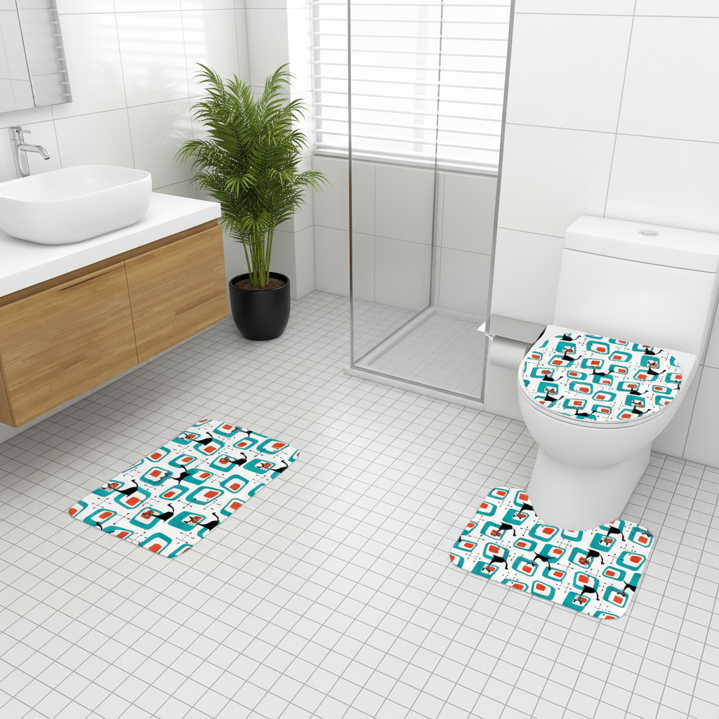 Atomic Cat Retro Midcentury Bath Rug Set | 3-Piece Vibrant 60s Decor