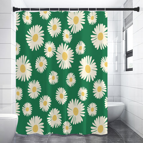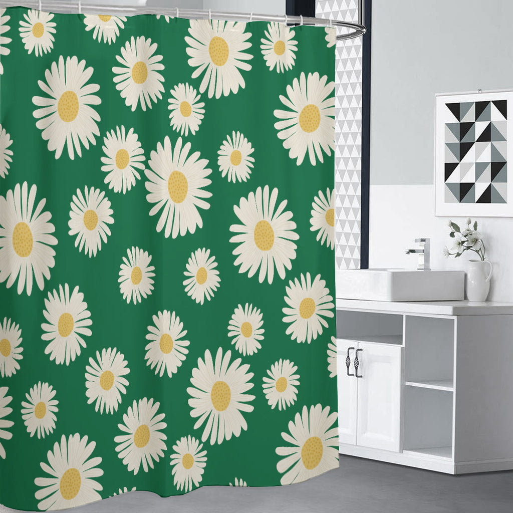 Daisy 70s Retro Shower Curtain, Midcentury Green White Yellow Bathroom Accent