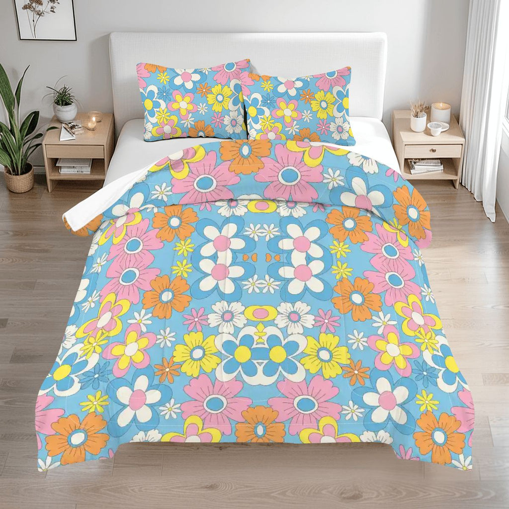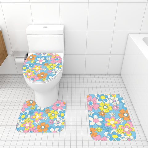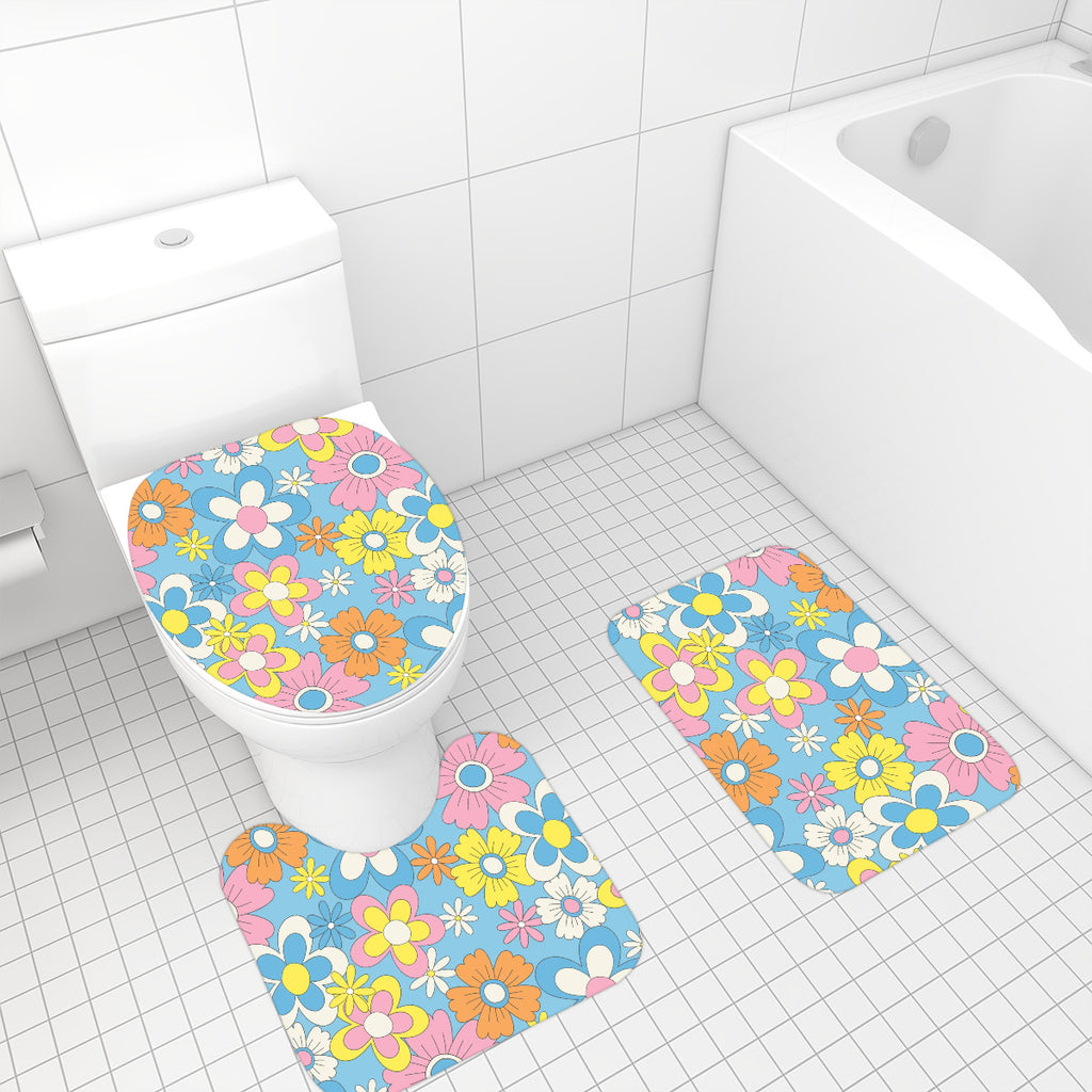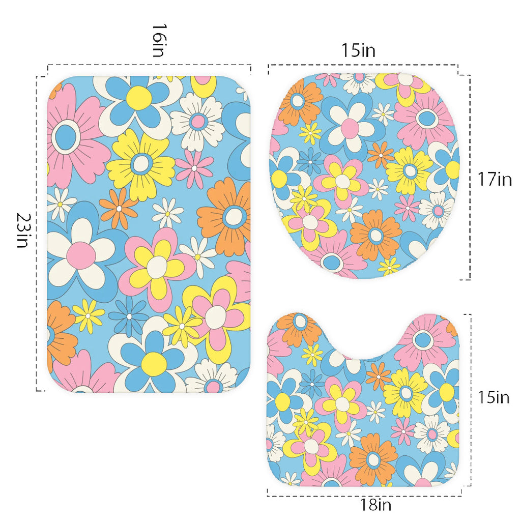 Retro 70s Hippie Flower Power Midcentury Bath Rug 3-Piece Set