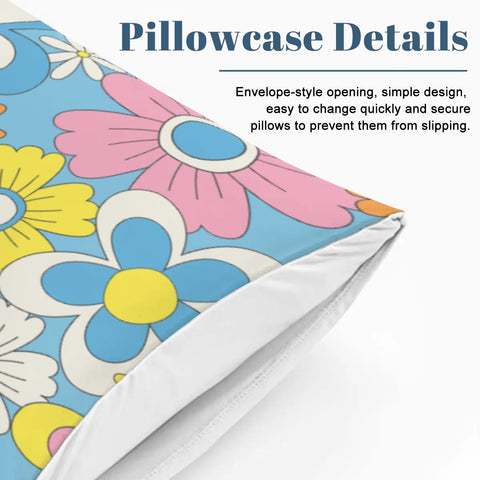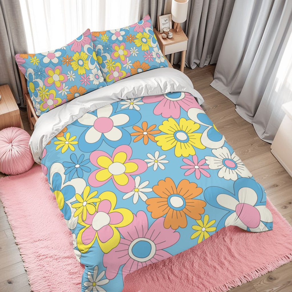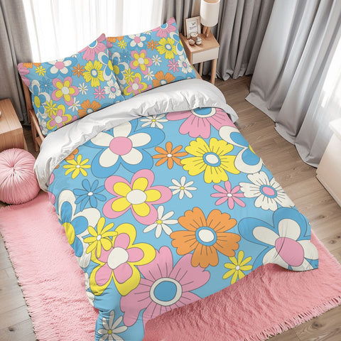 Retro 70s Flower Pattern Duvet Cover Set: Pastel Colors Floral Bedding