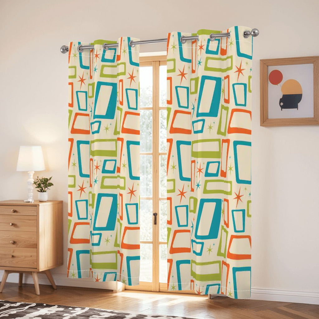 Bring bold midcentury style and modern comfort to your space with these vibrant retro blackout curtains! The colorful pattern evokes vintage mod energy while triple-woven blackout fabric blocks light, insulates heat, and ensures privacy. Designed for bedrooms, offices, and all retro-inspired interiors.
