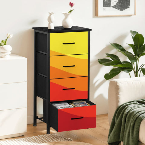 Stylish storage made easy!  This 4-drawer dresser combines sleek design with practical functionality. Perfect for bedrooms, living rooms, or entryways, it provides generous storage space while maintaining a unique look. Durable and lightweight, it’s an ideal solution for organizing clothes, accessories, or household items in style.
