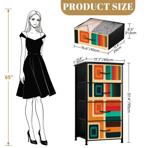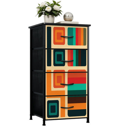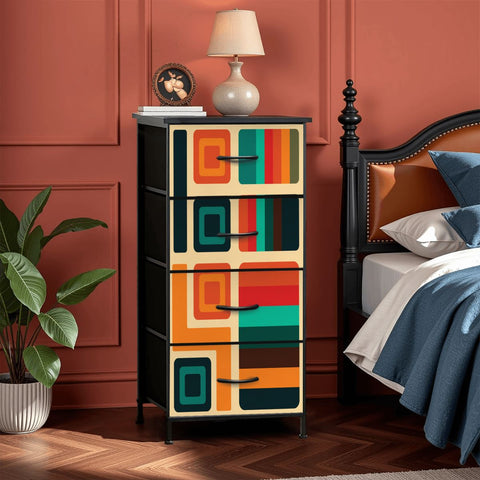 Stylish storage made easy!  This 4-drawer dresser combines sleek design with practical functionality. Perfect for bedrooms, living rooms, or entryways, it provides generous storage space while maintaining a unique look. Durable and lightweight, it’s an ideal solution for organizing clothes, accessories, or household items in style.