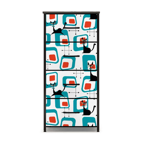 60s Atomic Cat Retro Dresser: Midcentury Modern Fabric Storage Cabinet