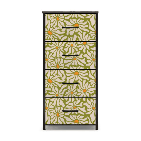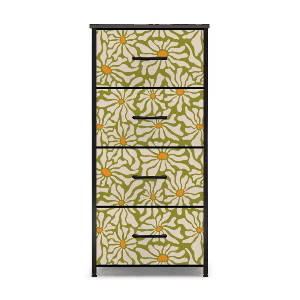 70s Daisy Pattern Midcentury Modern 4-Drawer Dresser – Floral Storage Cabinet