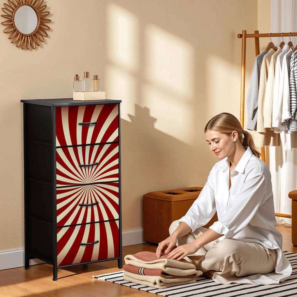 Stylish storage made easy!  This 4-drawer dresser combines sleek design with practical functionality. Perfect for bedrooms, living rooms, or entryways, it provides generous storage space while maintaining a unique look. Durable and lightweight, it’s an ideal solution for organizing clothes, accessories, or household items in style.