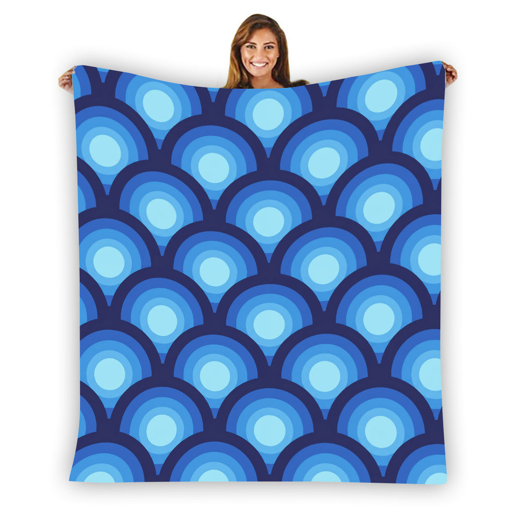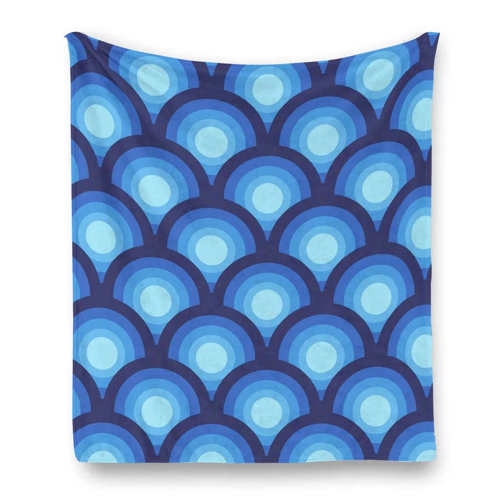 70s Retro Peacock Eye Home Decor Blanket – Blue Midcentury Modern Decor