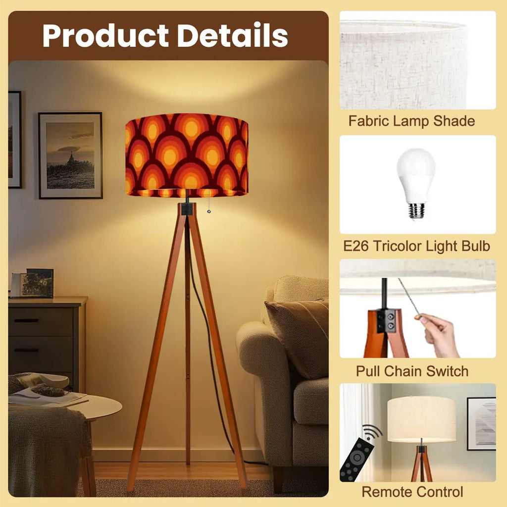 Nordic Retro Tripod Floor Lamp, Peacock Eye Orange