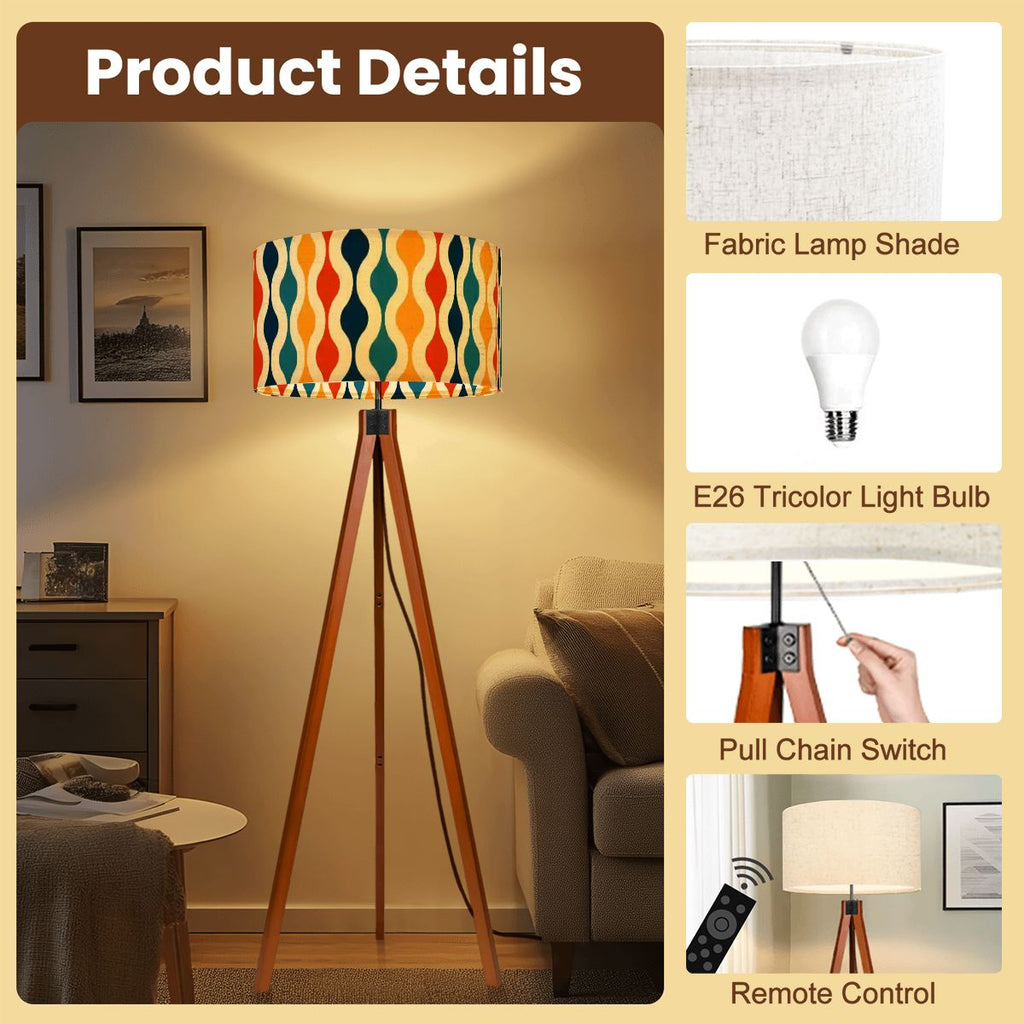 Retro 70s Tripod Floor Lamp: Midcentury Modern Lighting with Remote