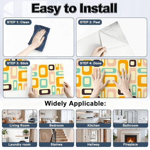 Retro 60s Self-Adhesive Wall Panel Kit: Stick & Peel Waterproof PVC Tiles