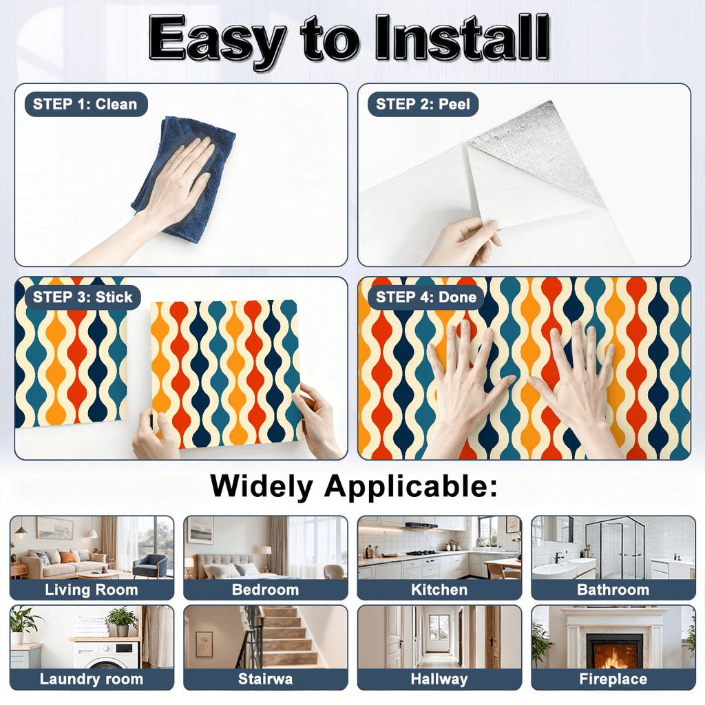 Retro 70s Self-Adhesive Wall Panel Kit: Waterproof Kitchen Bathroom Tiles