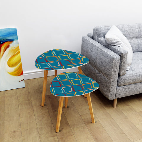 Triangle 50s Retro Tripod Nesting Table Set, Blue Geometric