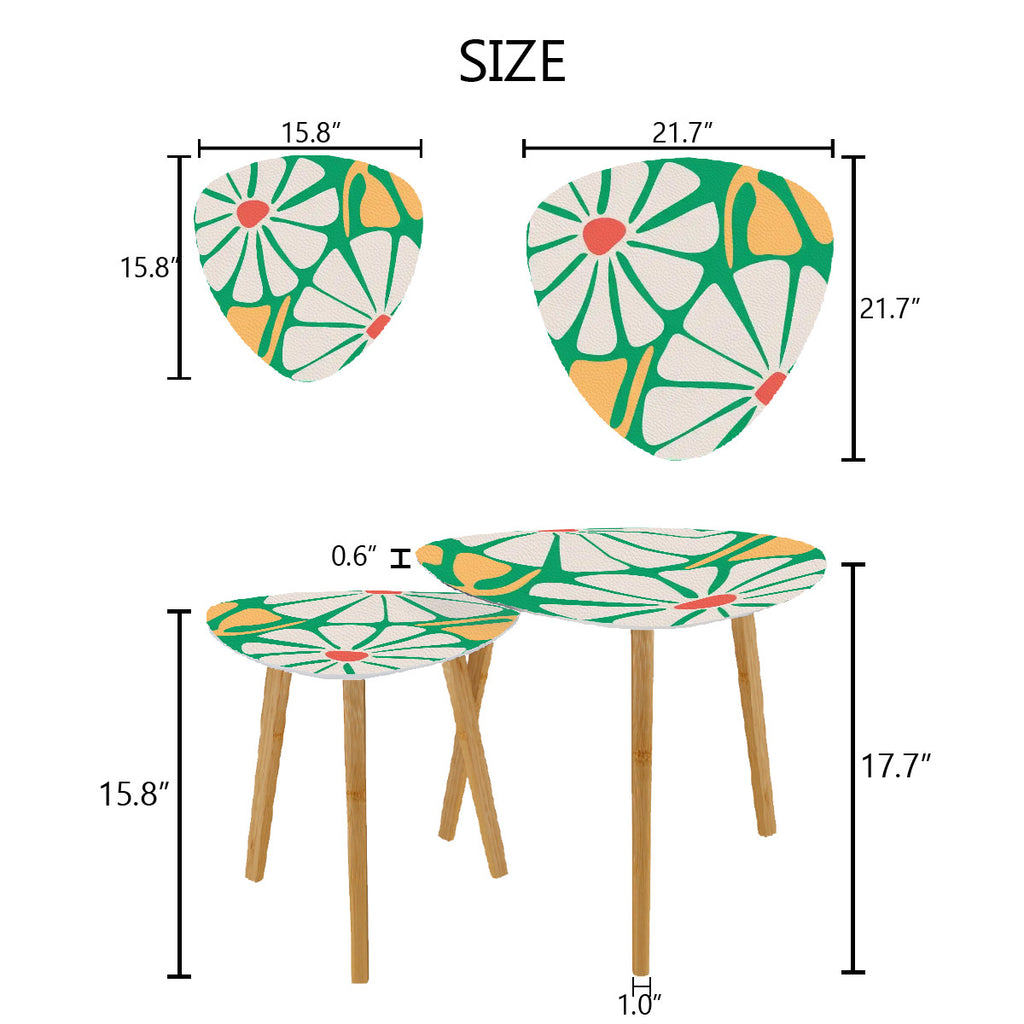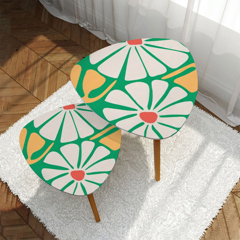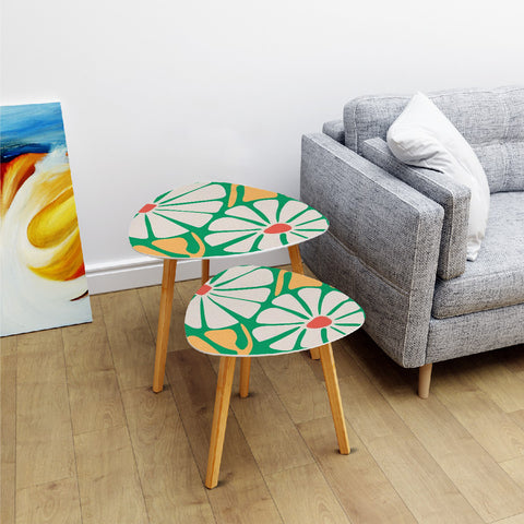 Triangle 60s Retro Tripod Nesting Table Set, Daisies on Green