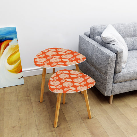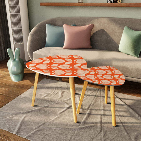 Triangle 60s Retro Tripod Nesting Table Set, Flowers on Red