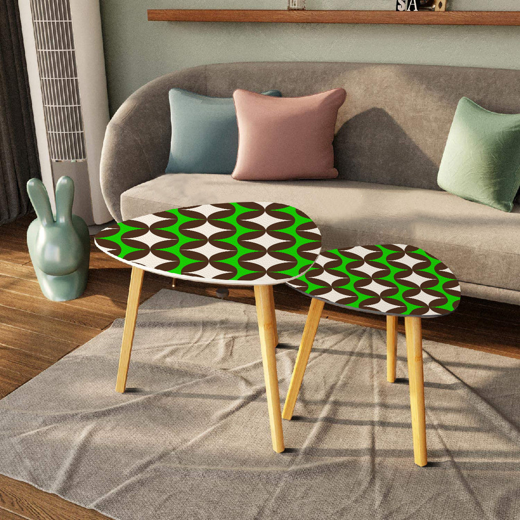 Triangle 60s Retro Tripod Nesting Table Set, Green Geometric