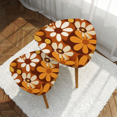 Triangle 60s Retro Tripod Nesting Table Set, Orange Daisies