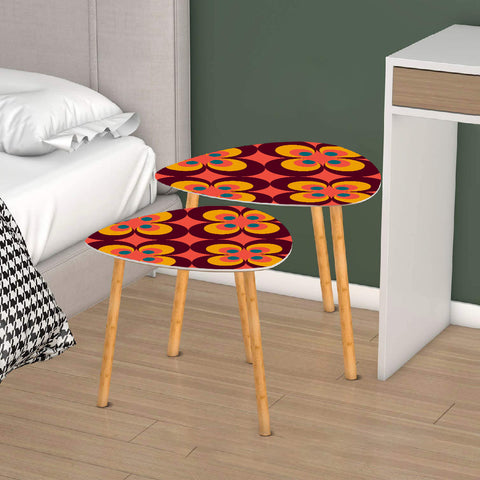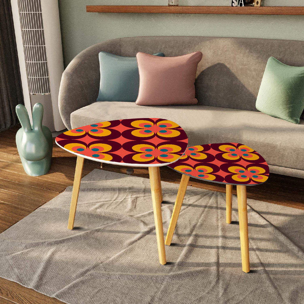 Triangle 60s Retro Tripod Nesting Table Set, Orange Flowers