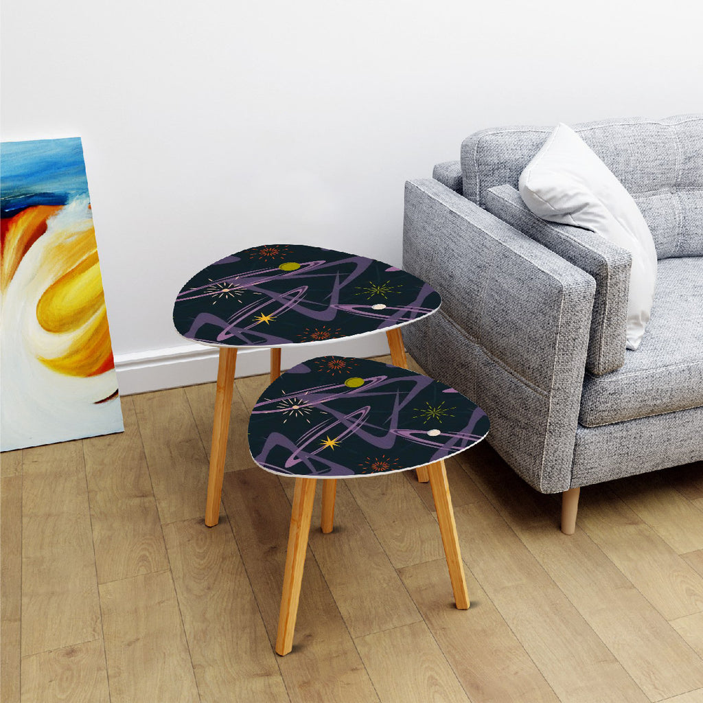 Triangle 60s Retro Tripod Nesting Table Set, Space Pattern