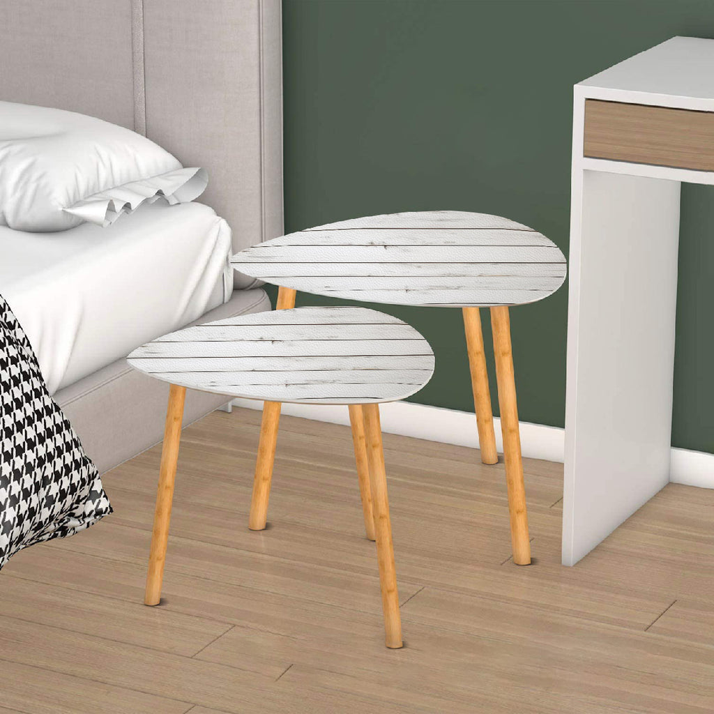Triangle 60s Retro Tripod Nesting Table Set, White Wood Grain