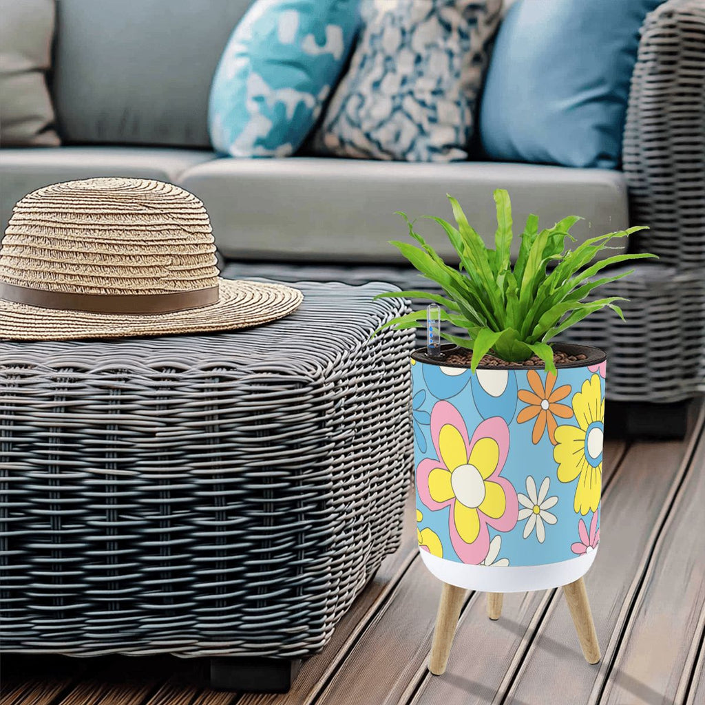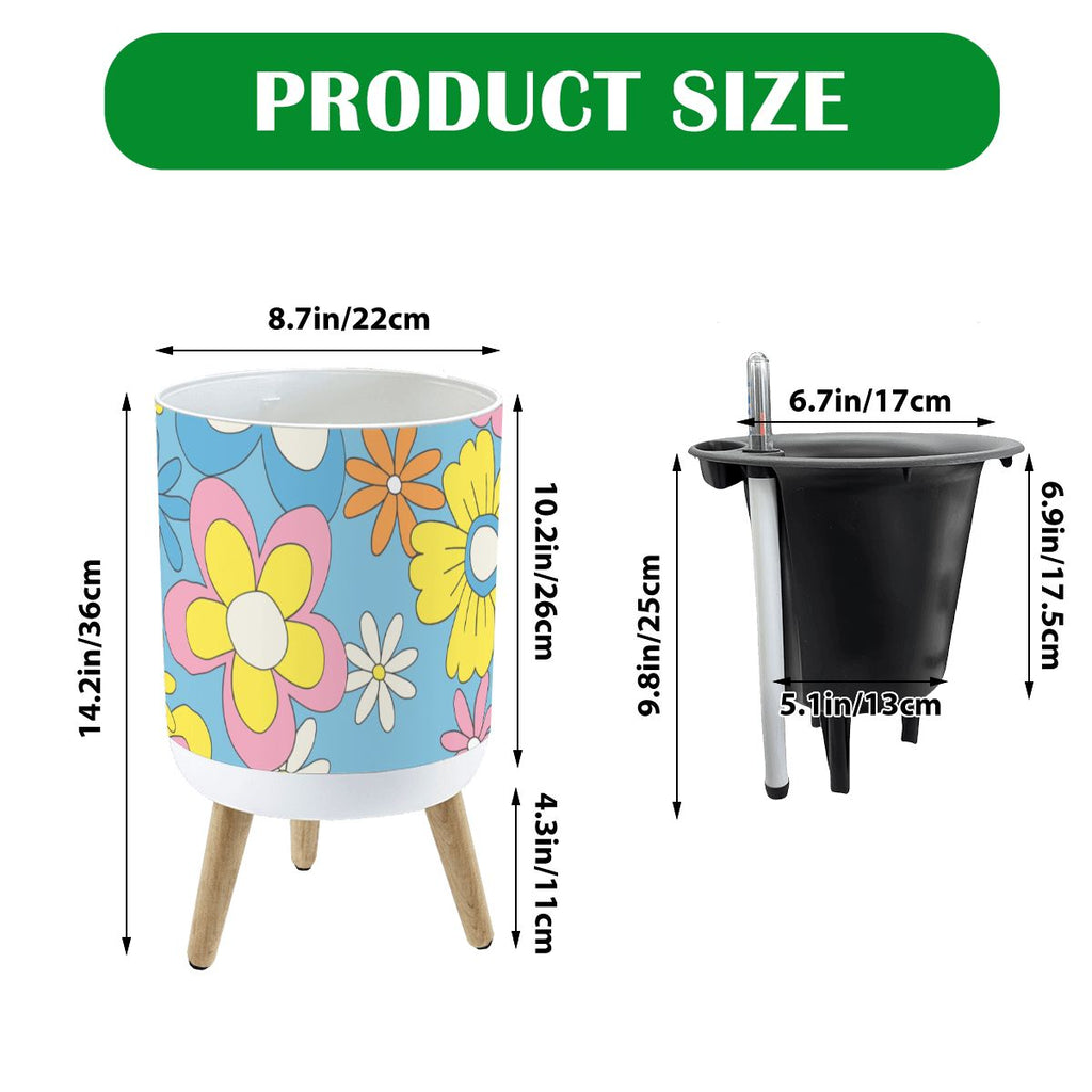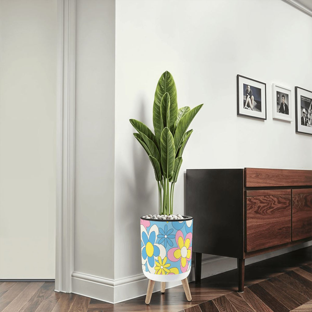 Midcentury Modern Retro Plant Pot with Wooden Legs - 70s Flower Power