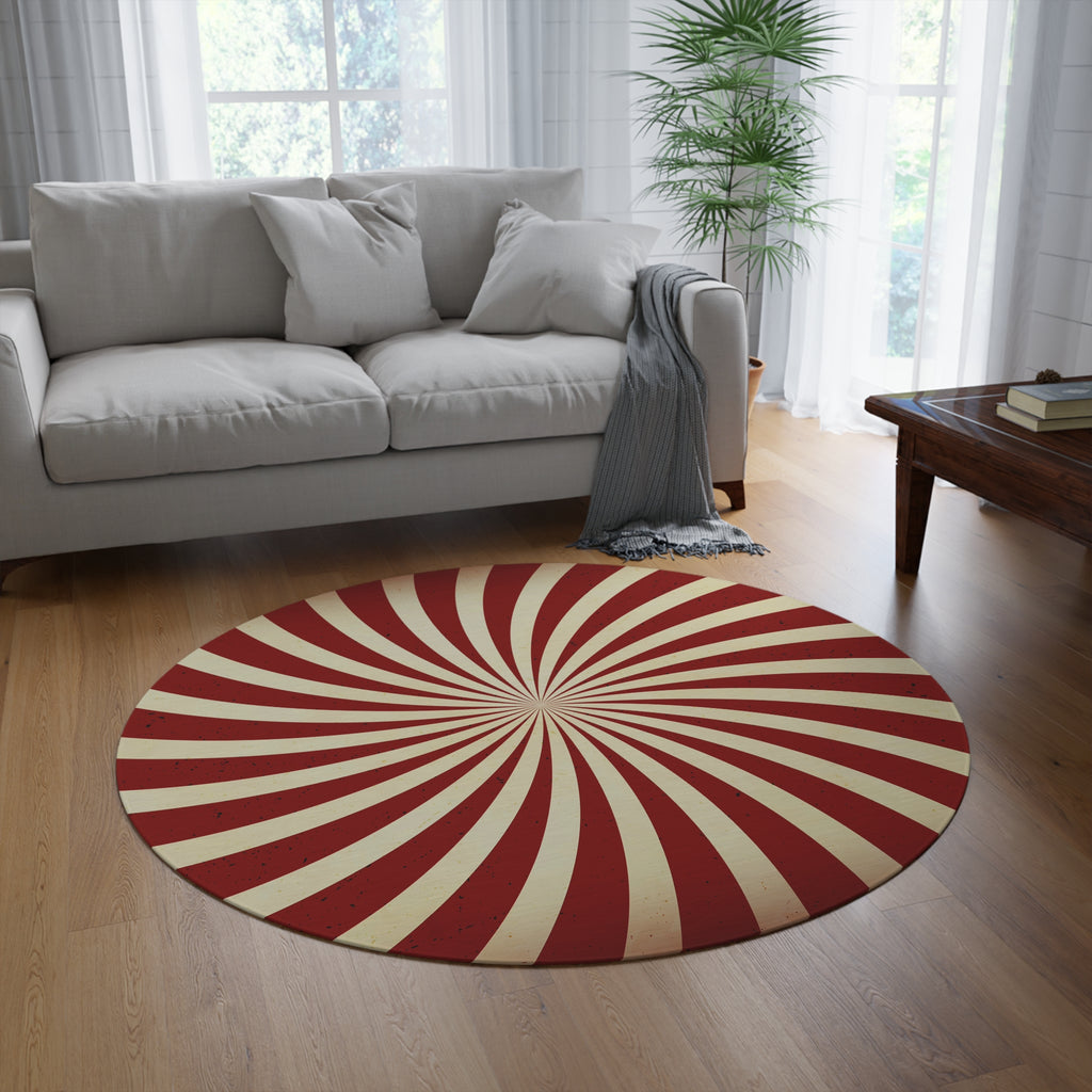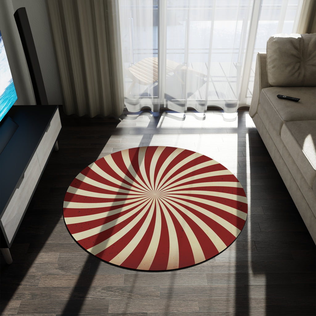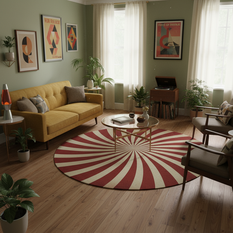 70s Sunburst Style Round Area Rug, Retro Boho Midcentury Floor Carpet