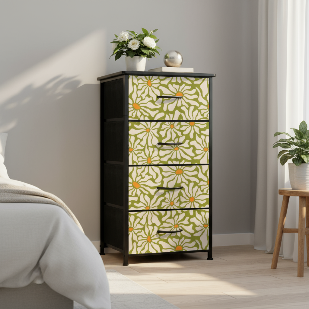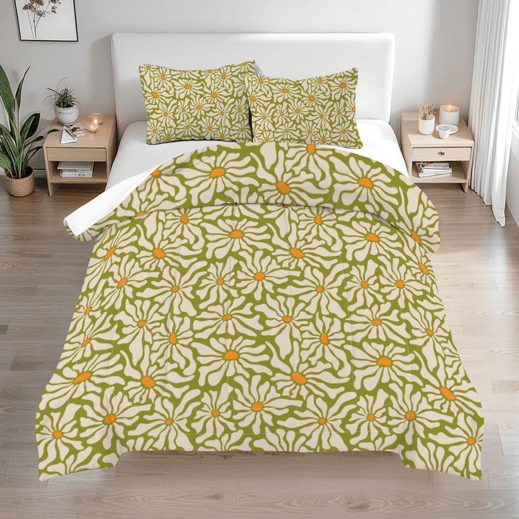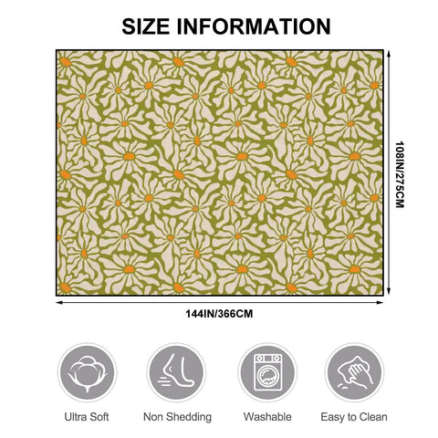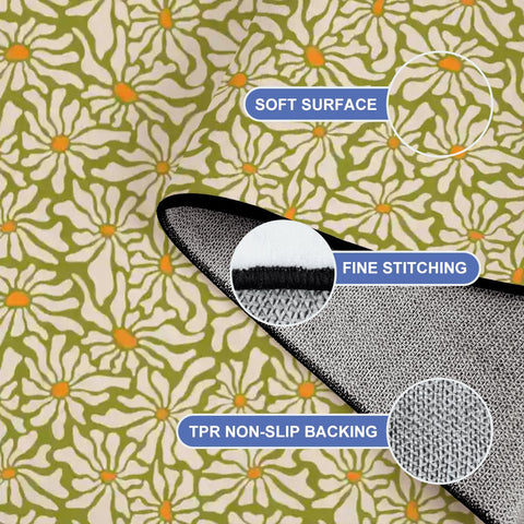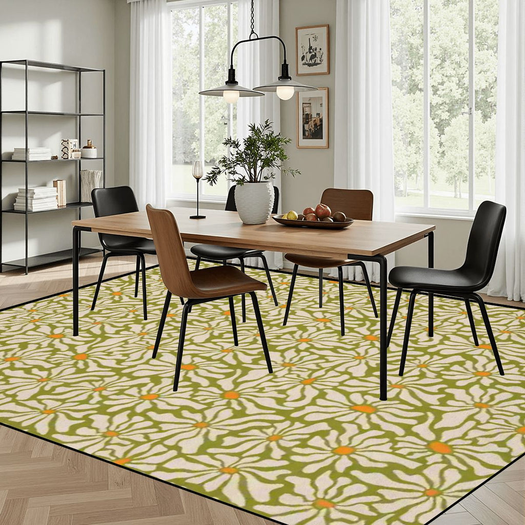 Midcentury 70s Retro Daisies Rug 12x9 ft – Large Floral Non-Slip Room Carpet