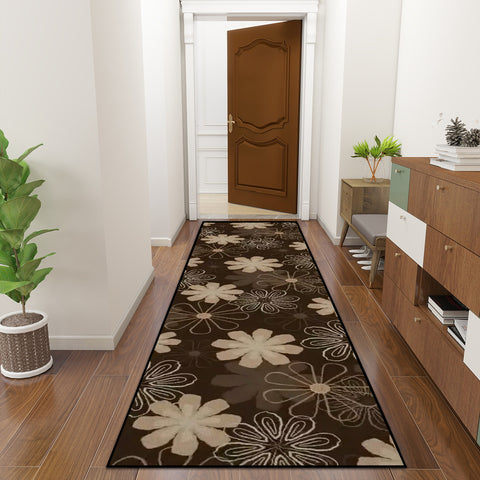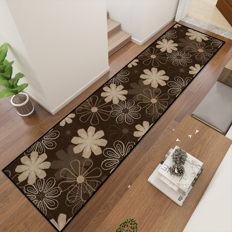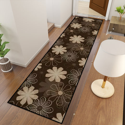 Mocha Retro Flower Hallway Runner Rugs – 60s 70s Midcentury Designs