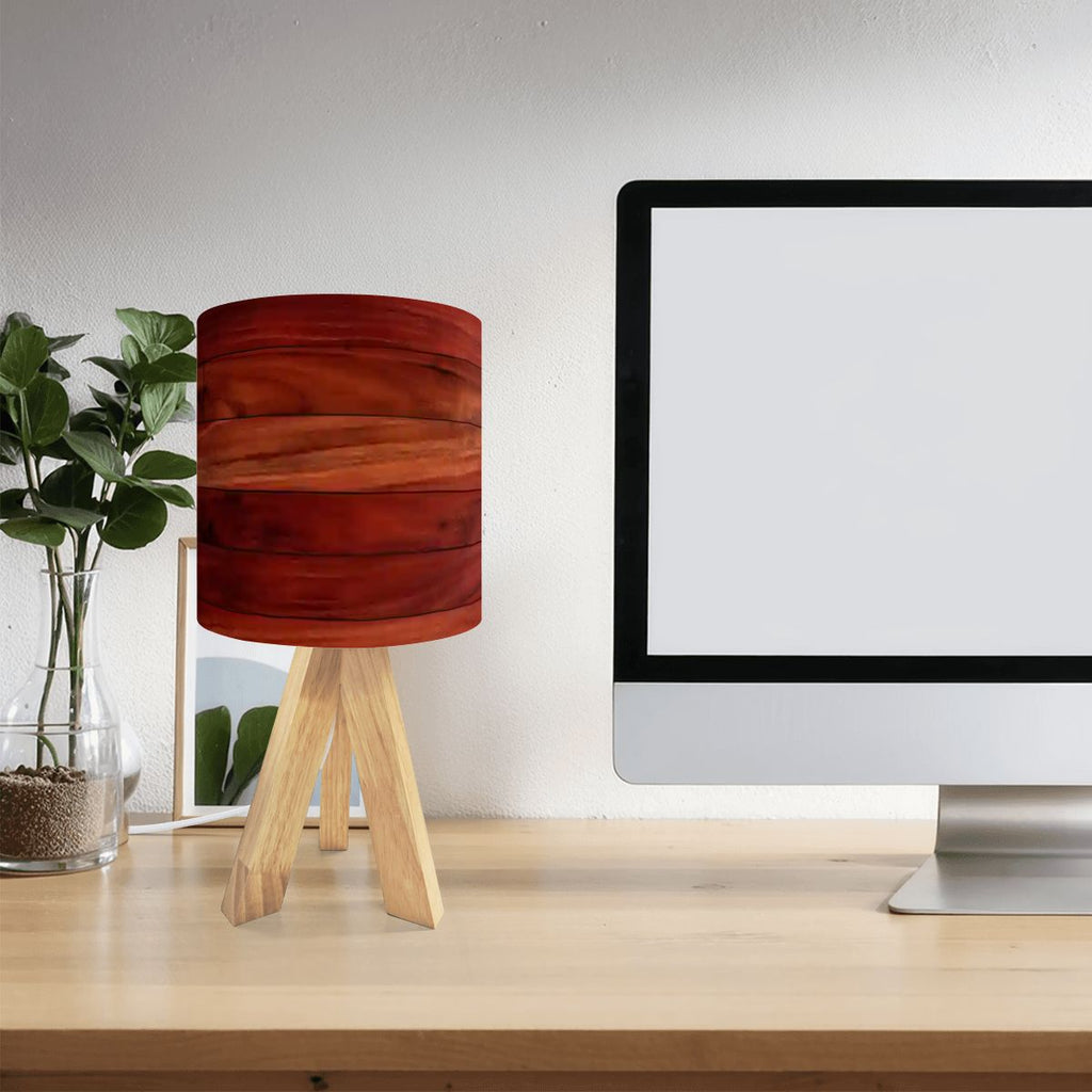 Midcentury Modern Tripod Table Lamp – Faux Wood Linen Shade, Remote