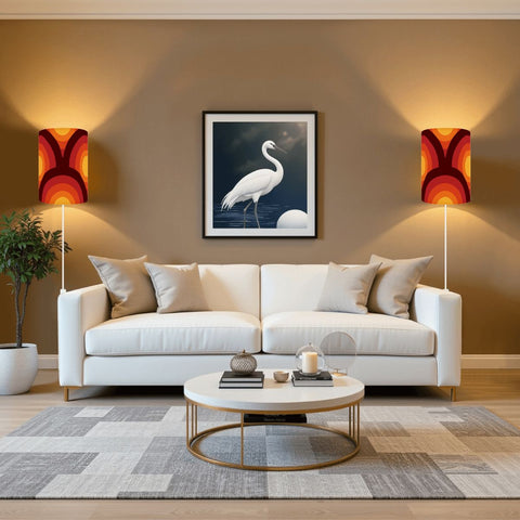 70s Retro Wall Sconces Set – Midcentury Style Linen Shade, Smart LED, Orange Yellow Concentric Circles