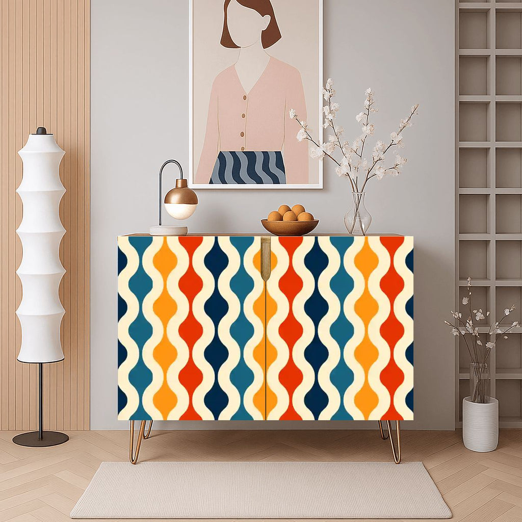 This midcentury modern cabinet blends retro charm and modern function, making it a versatile statement piece for any vintage or contemporary home.