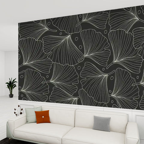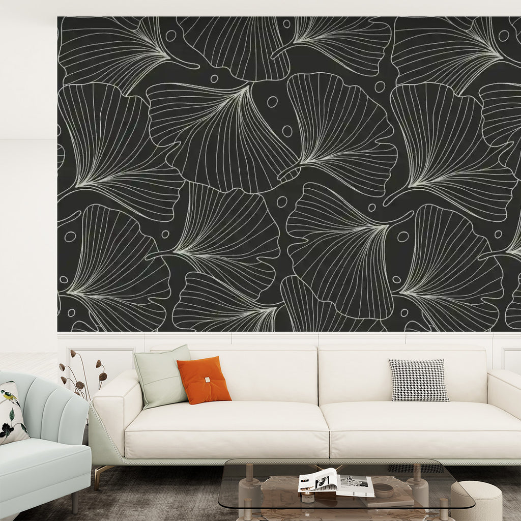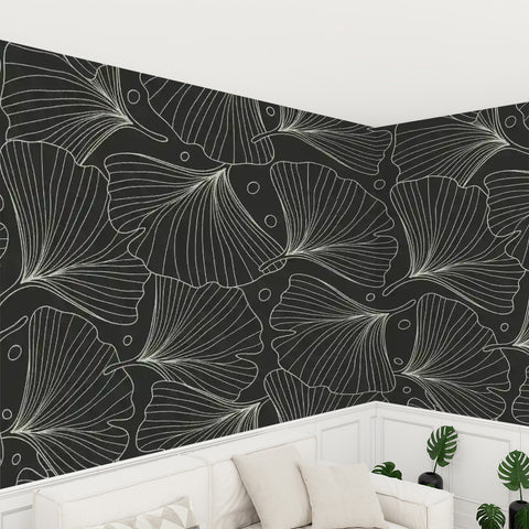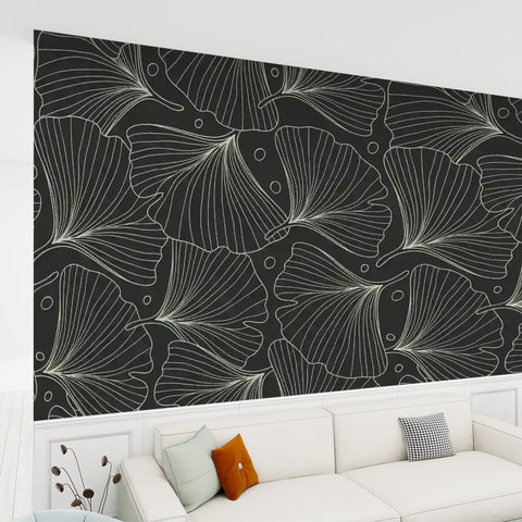 Black White Ginkgo Stick and Peel Wallpaper: Modern Removable Mural
