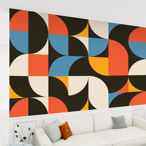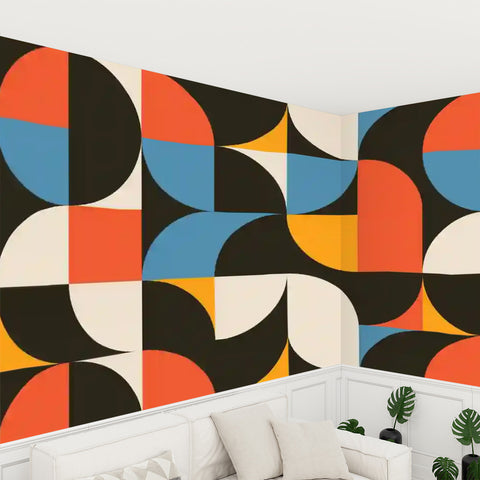 Retro 60s Geometric Stick & Peel Wallpaper: Midcentury Removable Mural