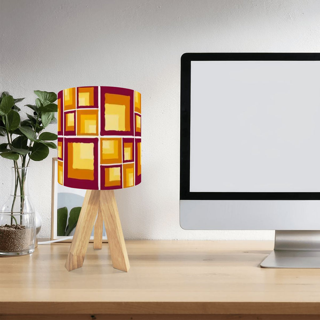 Orange Sqaures Retro Midcentury Tripod Table Lamp – Smart LED Remote