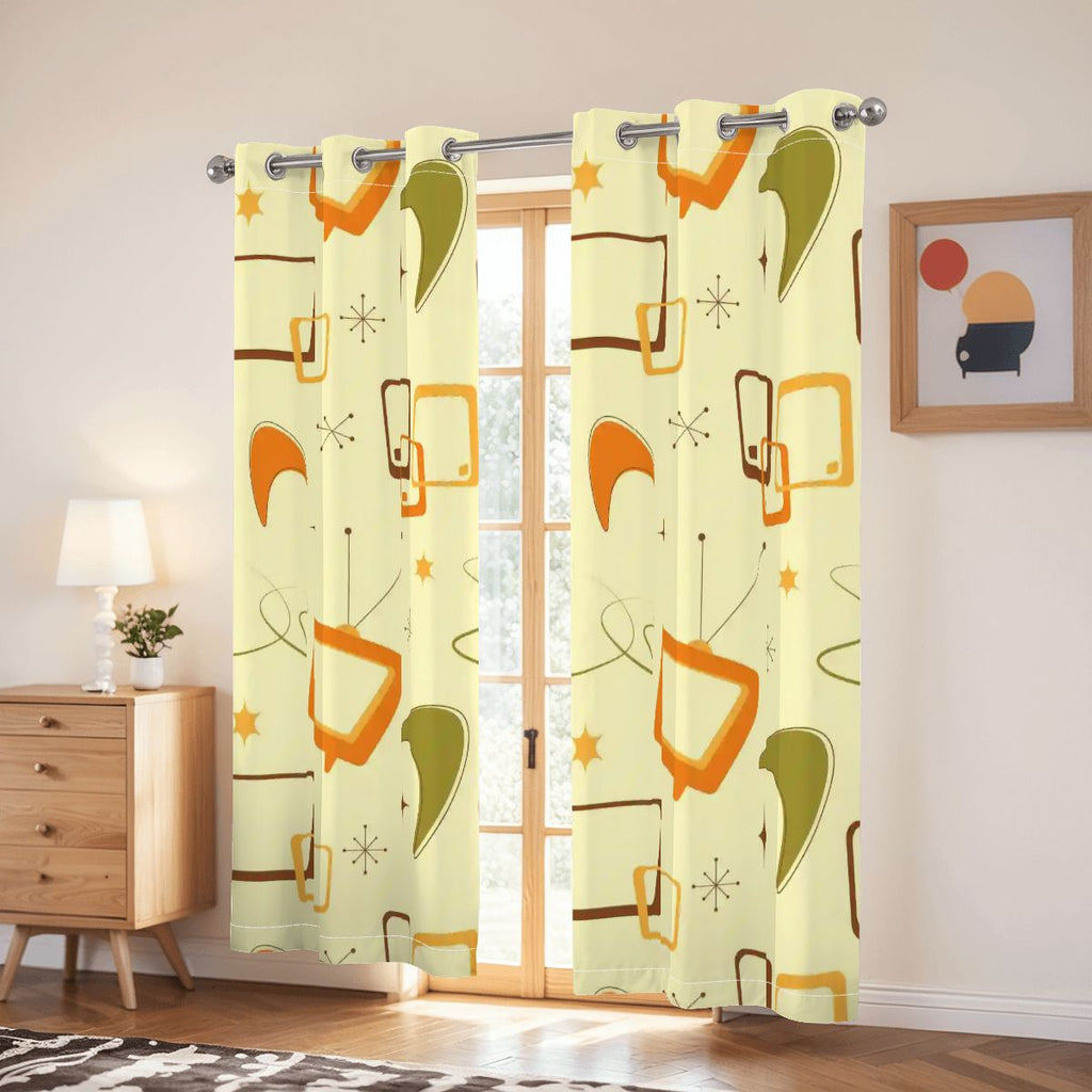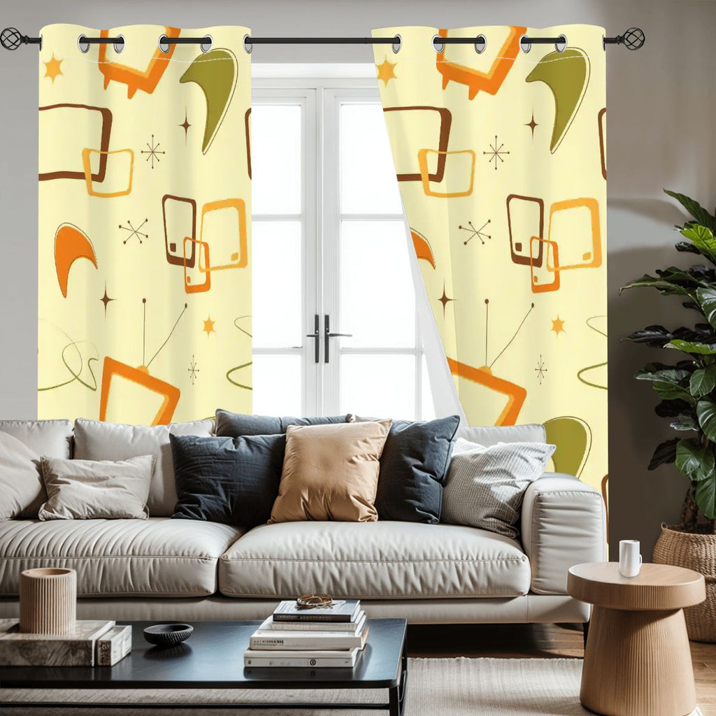 Bring bold midcentury style and modern comfort to your space with these vibrant retro blackout curtains! The colorful pattern evokes vintage mod energy while triple-woven blackout fabric blocks light, insulates heat, and ensures privacy. Designed for bedrooms, offices, and all retro-inspired interiors.