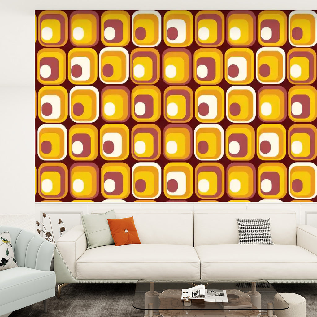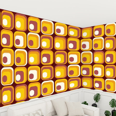 Midcentury Modern Wallpaper – 70s Retro Squares Peel and Stick Mural