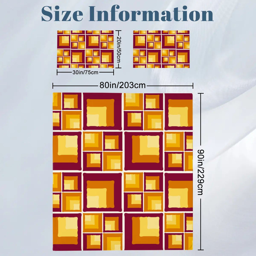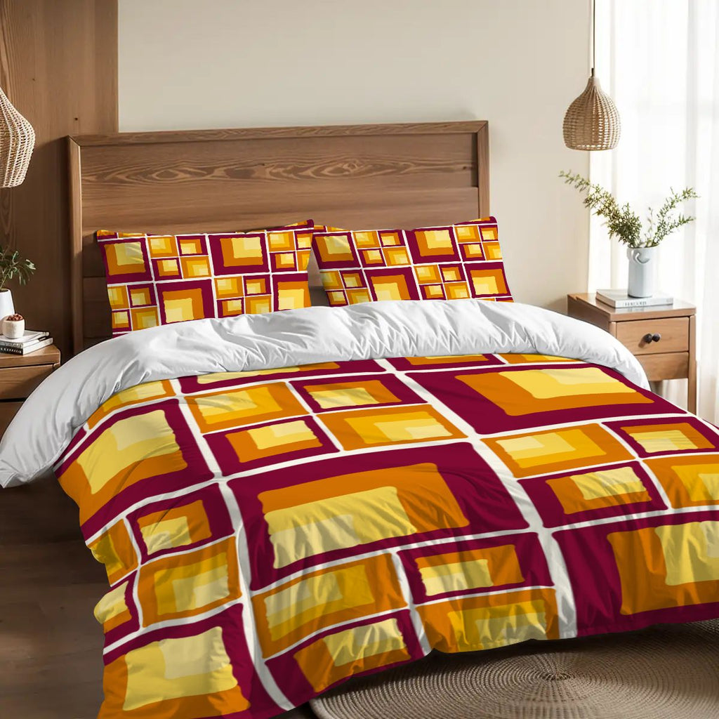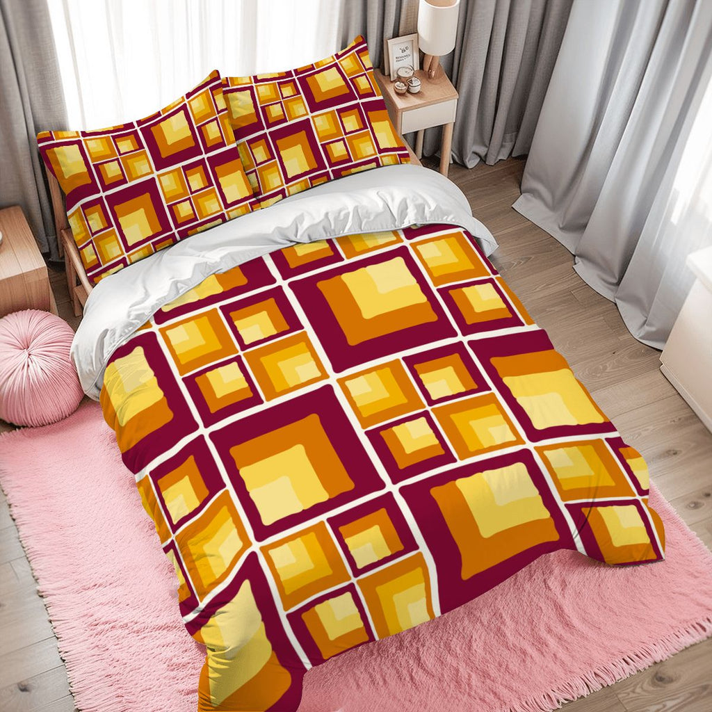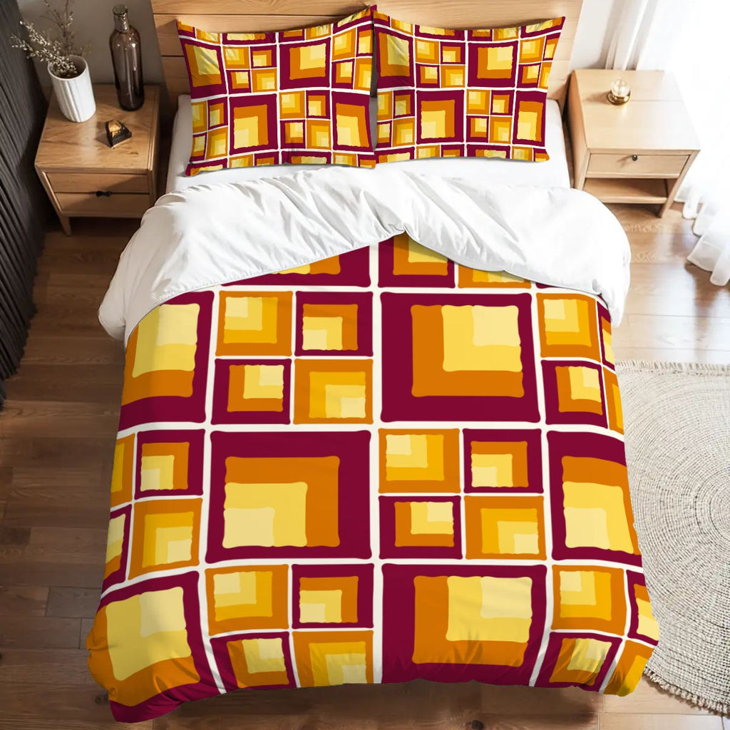 70s Retro Squares Pattern Comforter Set: Midcentury Microfiber Queen Size