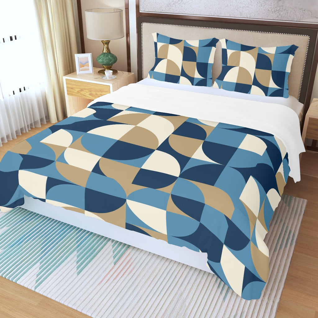 Bauhaus Retro Three Piece Duvet Bedding Set, Midcentury Style