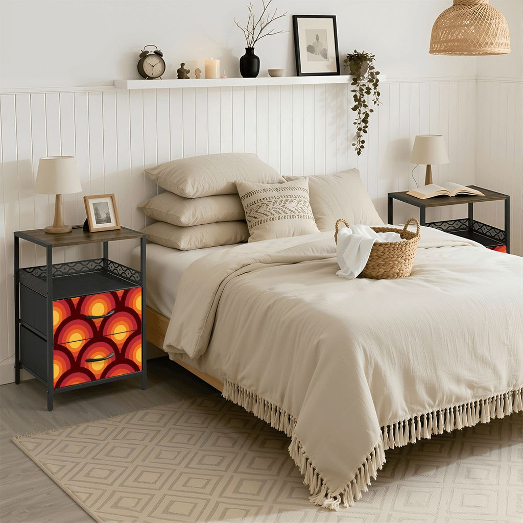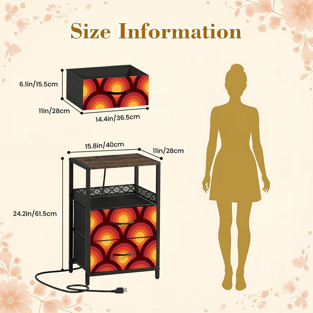 Retro 70s Accent Side Table - Nightstand with Built-In Charging Station