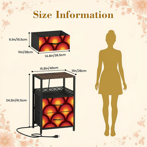 A smart bedside table that blends retro midcentury style with modern convenience. This compact nightstand features two spacious drawers and an integrated power strip built into the top, making it easy to charge phones, lamps, or laptops right where you need them.