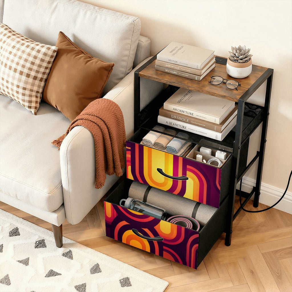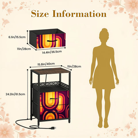 A smart bedside table that blends retro midcentury style with modern convenience. This compact nightstand features two spacious drawers and an integrated power strip built into the top, making it easy to charge phones, lamps, or laptops right where you need them.