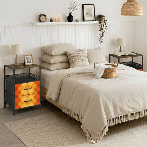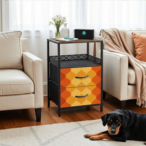 Retro 70s Bedside Table - Side Table with Power Strip & Storage Drawers