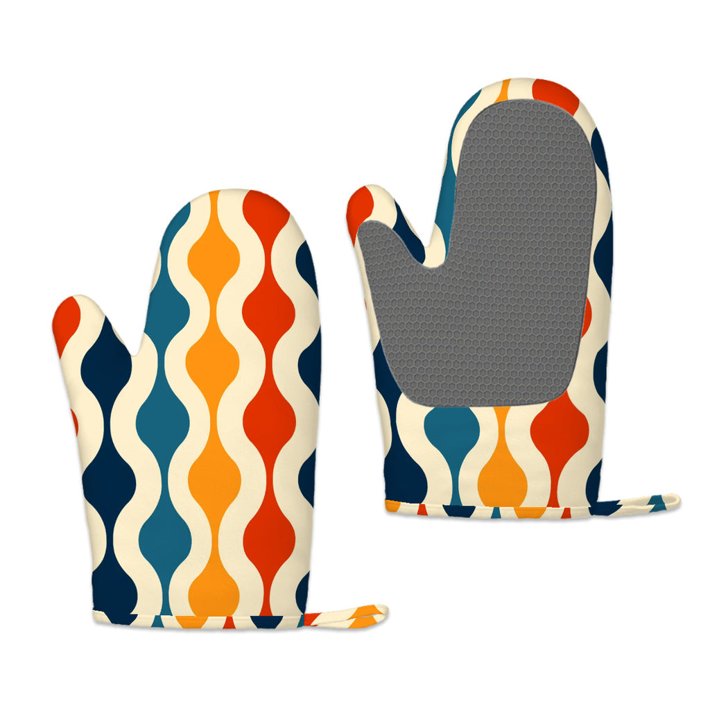 Retro 60s Silicone Oven Mitts – Heat Resistant Cooking Gloves