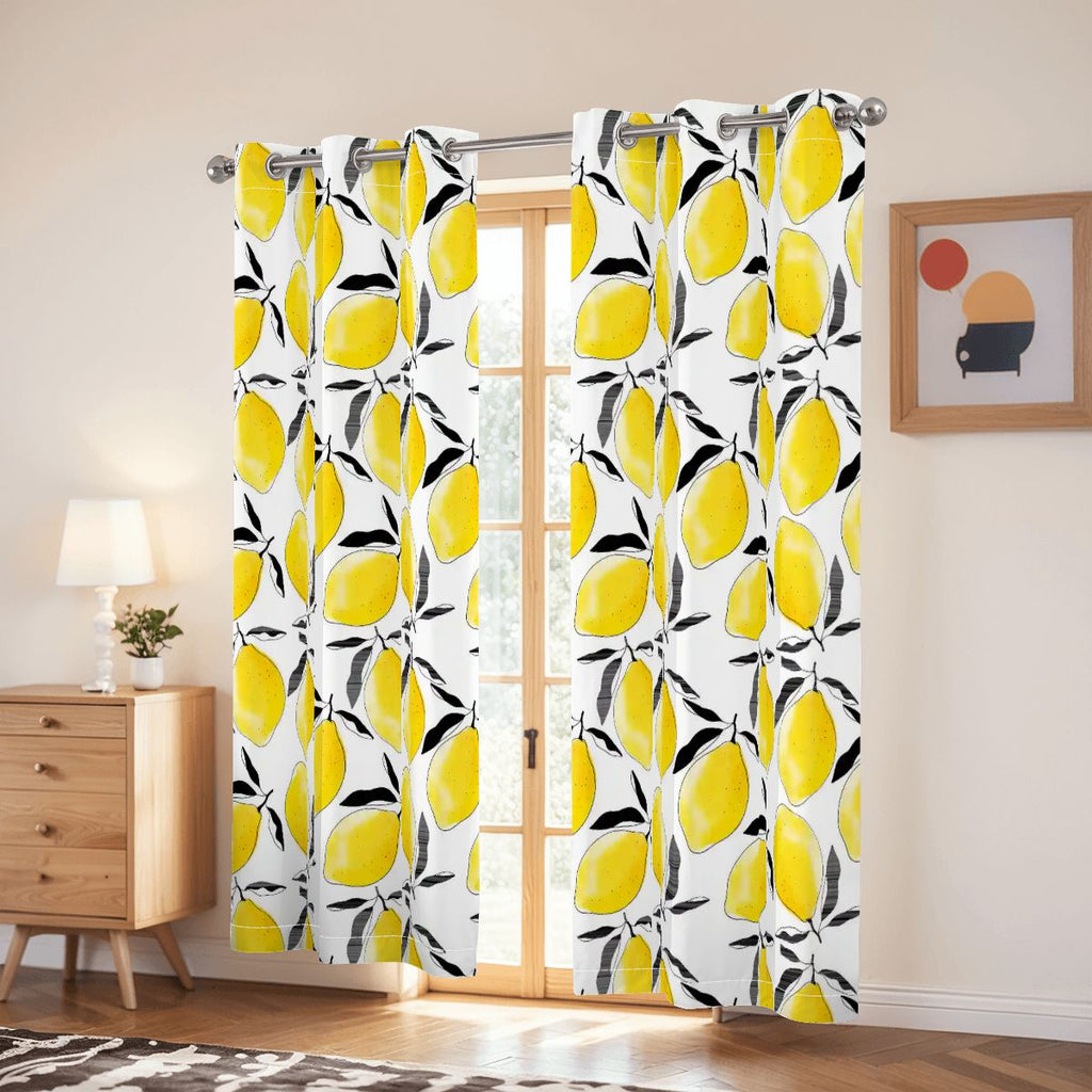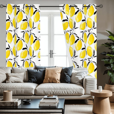 60s Retro Lemon Blackout Curtains: Mediterranean Midcentury Modern Drapes