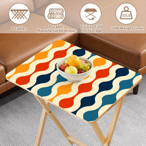 Bring classic midcentury charm and everyday flexibility into your home with this set of 4 wooden TV trays, complete with a matching storage rack. Designed for small spaces and modern living, these foldable tables are sturdy, easy to use, and store neatly when not needed.