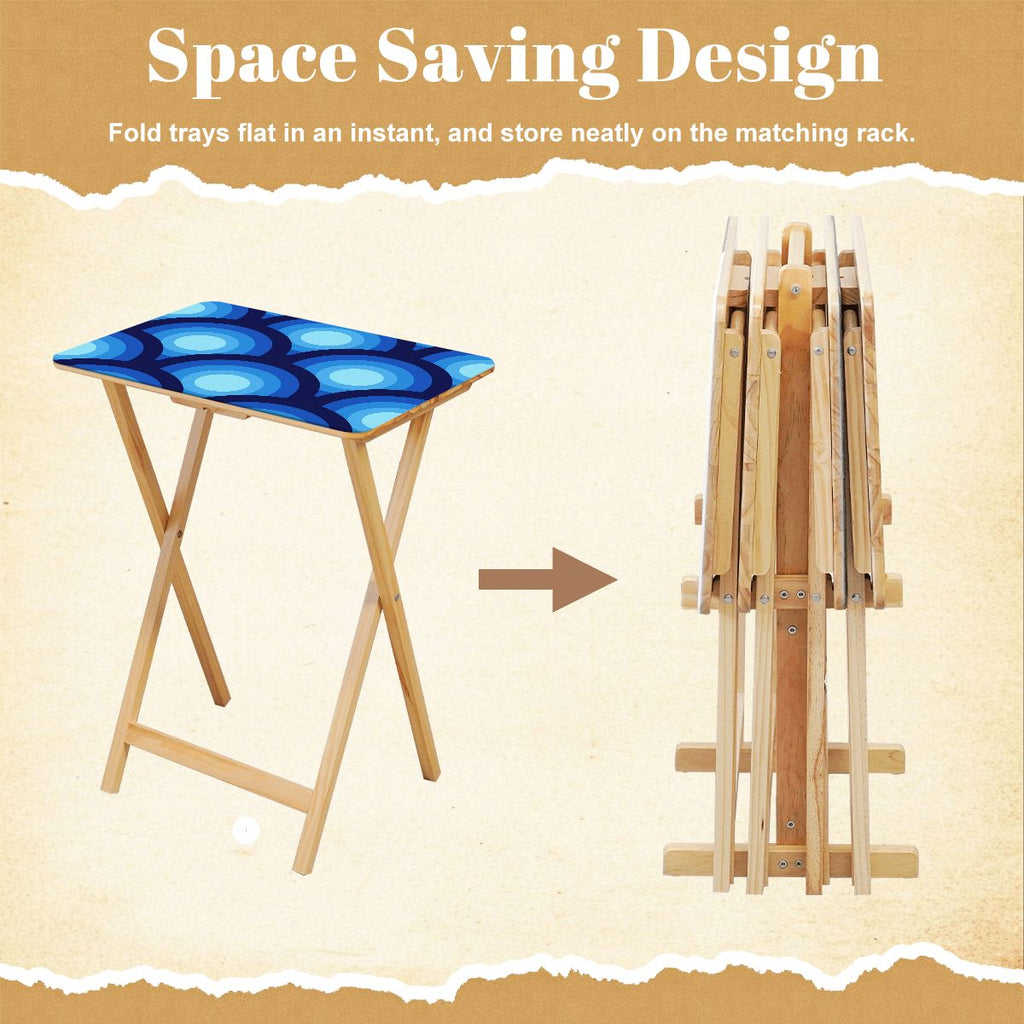 Bring classic midcentury charm and everyday flexibility into your home with this set of 4 wooden TV trays, complete with a matching storage rack. Designed for small spaces and modern living, these foldable tables are sturdy, easy to use, and store neatly when not needed.