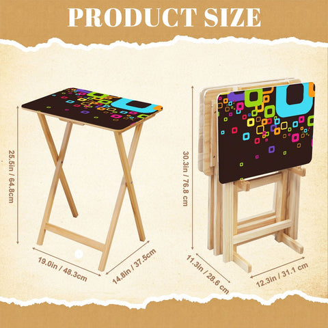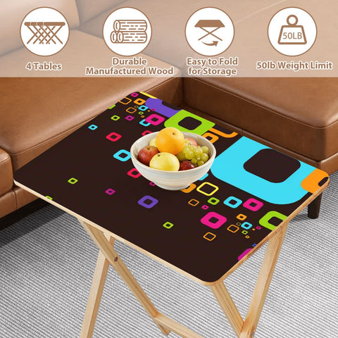 Retro Wooden Folding Side Tables Set of 4 – TV Trays with Storage Stand