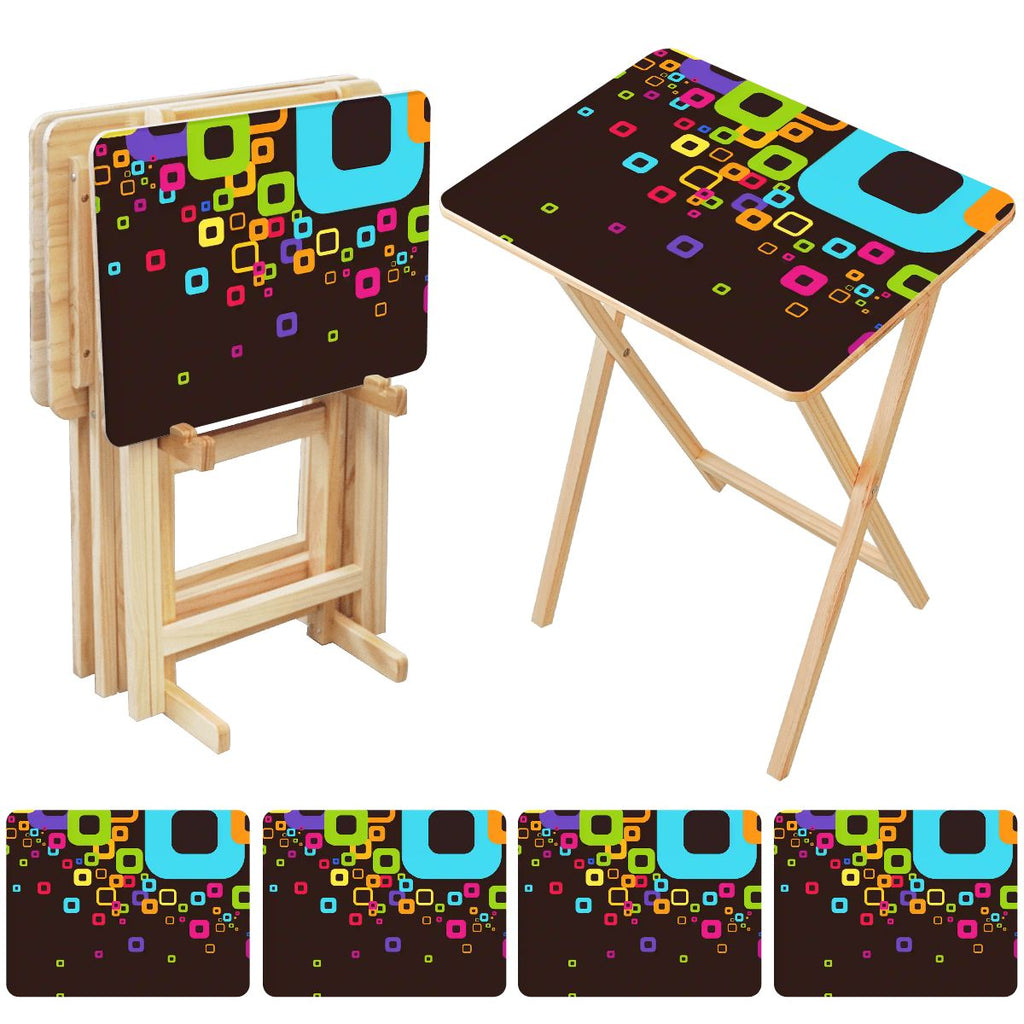 Bring classic midcentury charm and everyday flexibility into your home with this set of 4 wooden TV trays, complete with a matching storage rack. Designed for small spaces and modern living, these foldable tables are sturdy, easy to use, and store neatly when not needed.